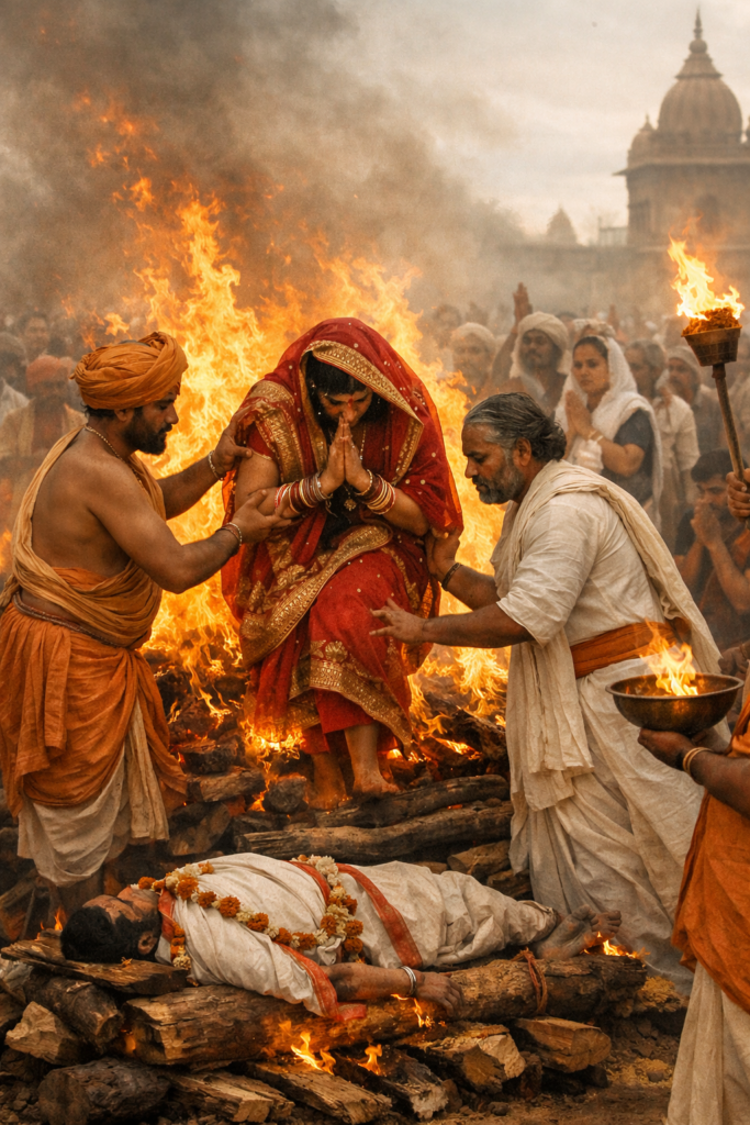 One such ritual — Sati, the burning of widows on their husband’s funeral pyre — continues to reverberate through India’s collective memory. Once practiced in parts of the subcontinent, it was so disturbing that laws were eventually enacted to prohibit not just the act itself, but even its glorification in cultural forms. (Wikipedia)